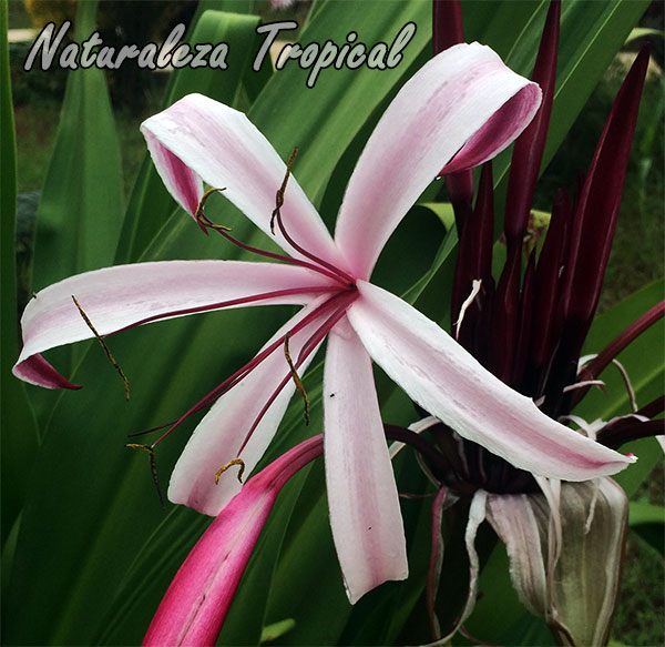 El género Crinum incluye 120 especies que se distribuyen en las regiones tropicales y subtropicales. Las flores son muy grandes y pueden alcanzar hasta 15 cm de diámetro. Debido a esto es muy frecuente su cultivo como plantas ornamentales. Además poseen otro atractivo que es el dulce aroma que desprenden las flores de estas especies. Se pueden encontrar plantas con flores de color rosa, blanco y rojo.