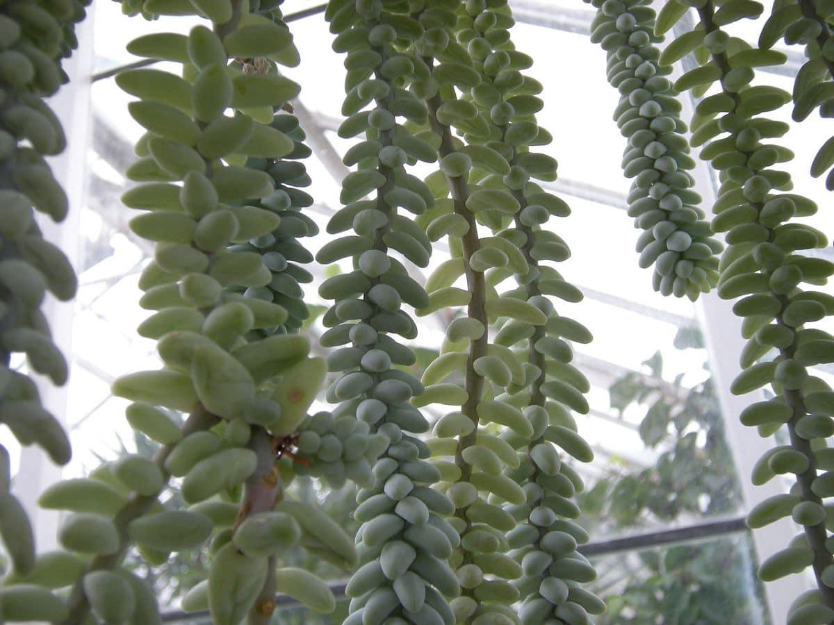 La Rhodiola rosea, conocida como rodiola, es una planta crasa con flores masculinas de color anaranjado, y con flores femeninas púrpuras o granates. En efecto: es una planta dioica, y para conseguir semillas es necesario que haya un ejemplar macho y otro hembra floreciendo a la vez. La altura de la planta es de 30 centímetros, y sus hojas son verdes, carnosas, y se distribuyen en espiral por el tallo. Soporta hasta los -10ºC.Sedum morganianum