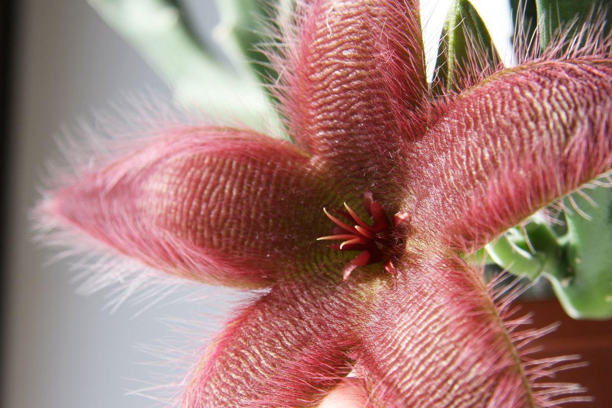 El Sempervivum tectorum, conocido como la siempreviva de los tejados, es una una planta crasa pequeña, que alcanza los 5 centímetros de altura y que forma grupos de unos 30 centímetros de ancho. Sus hojas son más o menos triangulares, de color verde con las puntas rojas, y las flores surgen de tallos que duplican la altura de la planta en verano. Soporta muy bien las heladas moderadas, de hasta los -15ºC.Stapelia grandiflora