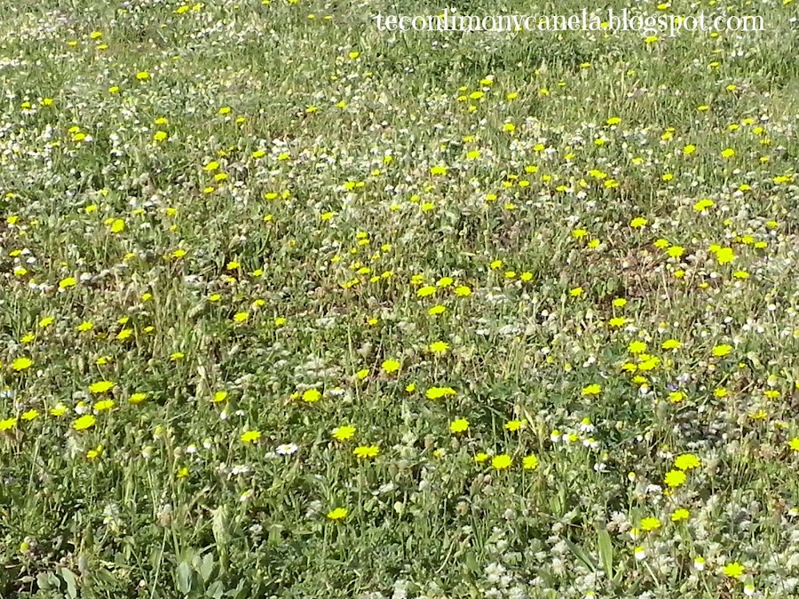 Si os soy sincera, lo que me habría gustado de verdad es tumbarme sobre la hierba y las flores y bajar esa pendiente (porque aunque en la foto no se vea, el terreno va hacia abajo) como cuando era pequeña, rodando y rodando.... Tal vez lo haga el próximo domingo ahora que lo pienso... :-)
