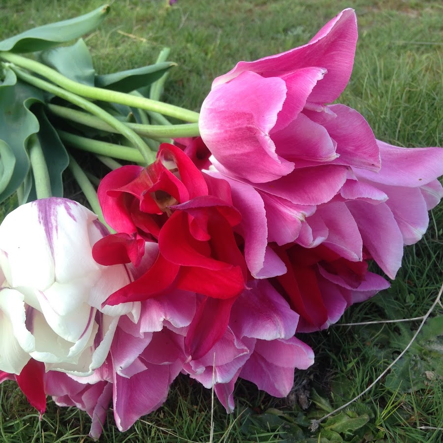 Son los últimos tulipanes de este año. Su temporada acaba. Florece ya la lila, y la fresa tiene las bayas verdes.