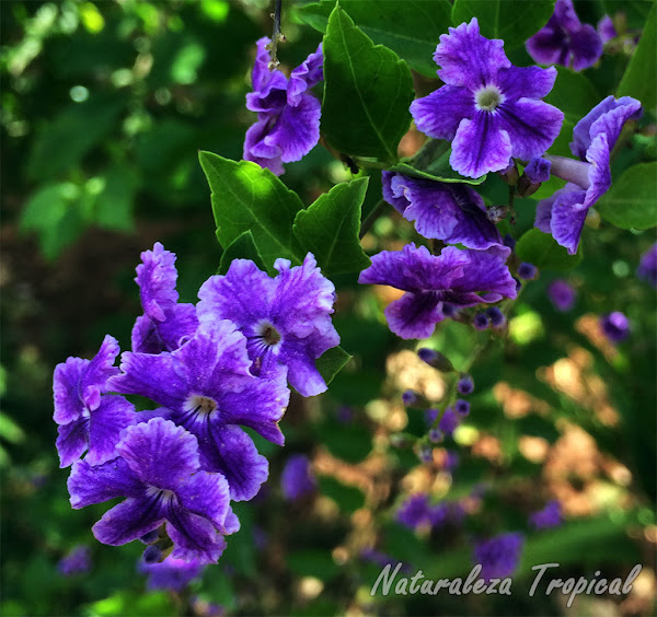 El género Duranta pertenece a la familia Verbenaceae y está compuesto por más de 30 especies de arbustos. Son nativos de américa, pero se han extendido por todas las zonas tropicales del mundo. Pueden alcanzar de 2 a 4 metros de altura, y pueden presentar espinas en el tallo. Se considera invasora en muchos lugares, donde se ha naturalizado por su cultivo como planta ornamental.