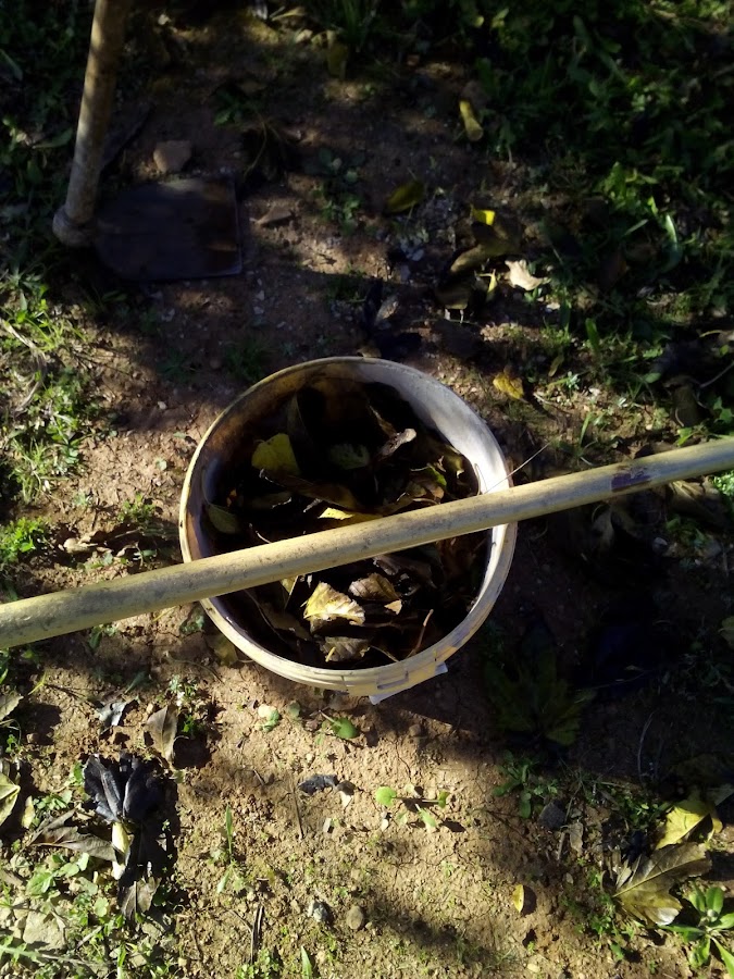 Para poder hacer los montones y recogerlas nos ayudamos de un rastrillo y las vamos metiendo dentro de un cubo para llevarlas a la pila de compost o a nuestro compostador casero, que es nuestro caso.