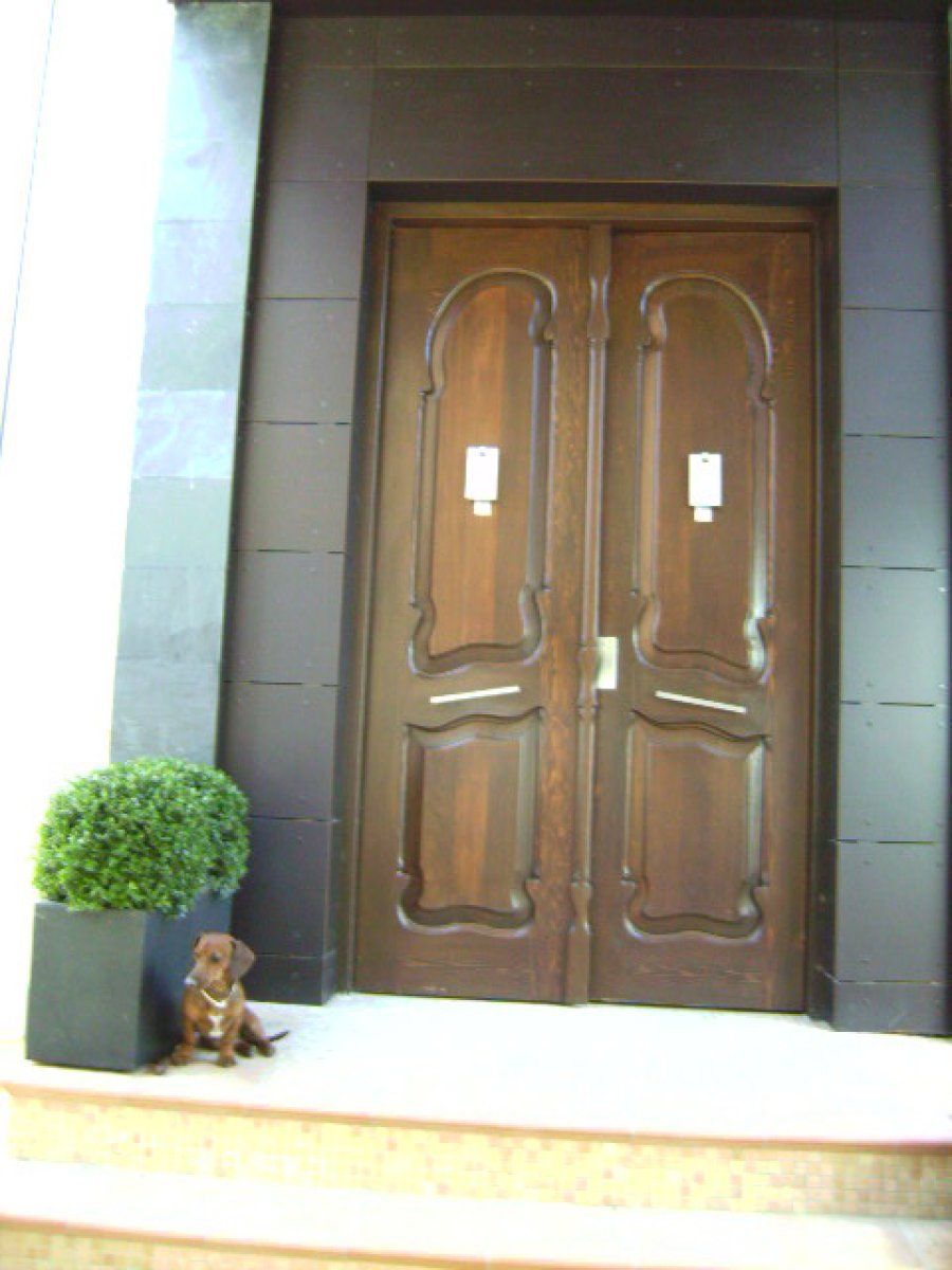 Entrada señorial. La entrada a esta vivienda de estilo contemporáneo sólo admitía una sencilla jardinera rectangular de resina en armonía con la suave textura de la fachada. Recurrimos al clásico Boj, (Buxus sempervirens) por su sencillez y elegancia, acordes a la arquitectura que vemos.