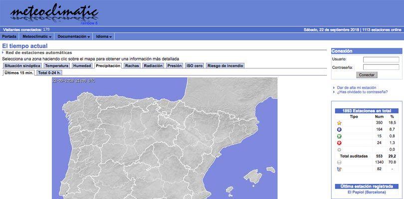 MeteoClimatic: Red de estaciones (incluye pluviómetros) de aficionados.