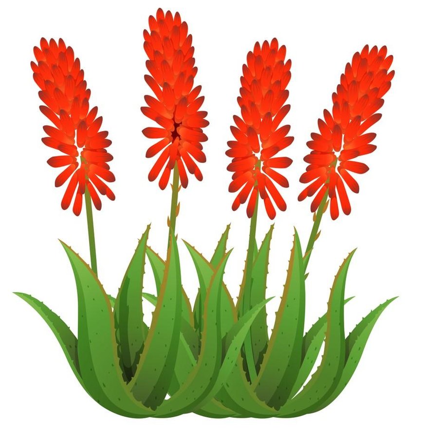 Casi todas las variedades de aloe poseen vistosas flores de forma tubular, dispuestas en racimos, que pueden ser verticales o colgantes.