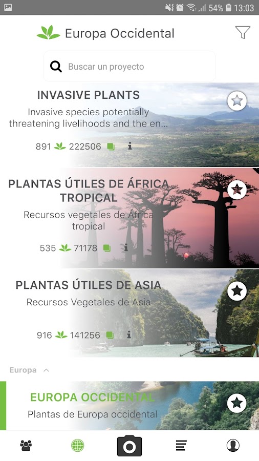 Una vez que entras en uno de los directorios, por ejemplo EUROPA OCCIDENTAL, podrás comenzar a ver diferentes fotografías de otros usuarios donde ellos proponen el nombre exacto de la planta que han fotografiado y el resto de usuario pueden validar si esa planta es realmente la que es o no, el usuario puede también dejar comentarios.
