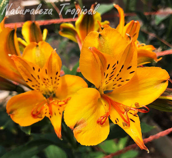 Lirio del Perú con flores amarillas manchadas, género Alstroemeria