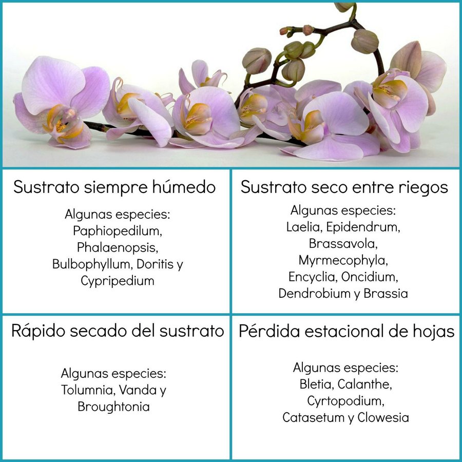 - Por norma general, las orquídeas necesitan más agua en época de floración.