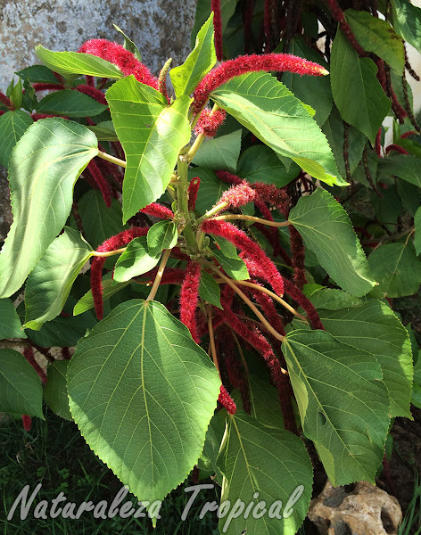 Vista de la planta Cola de Mono o Moco de Pavo, Acalypha hispida