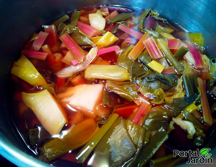 Si al caldo lo haces con hojas y tallos de remolacha lograrás un color rojo intenso muy original.