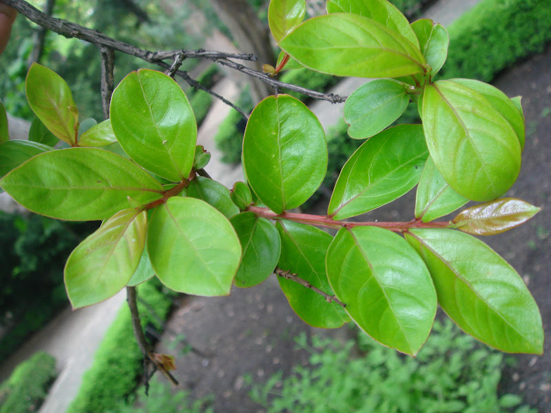 Hojas simples, aovadas de borde liso, cambiando a colores anaranjados en el Otoño
