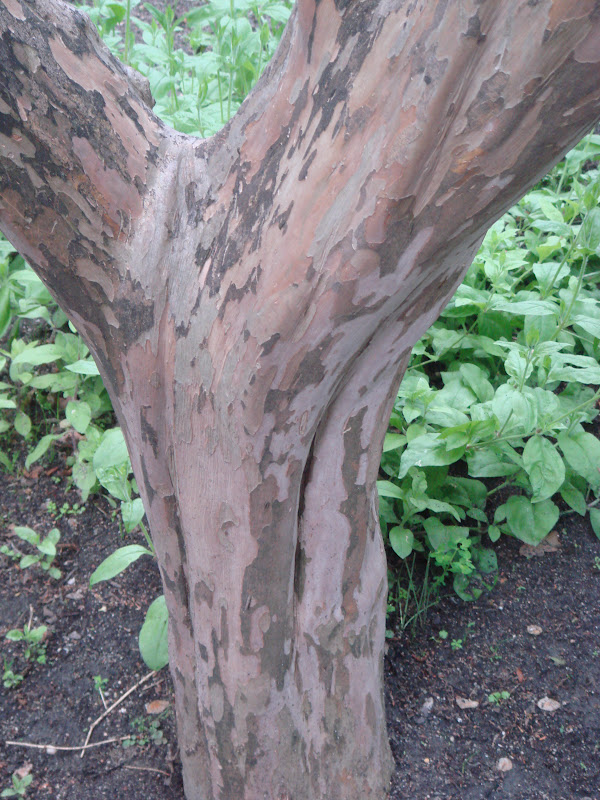 Tronco en ejemplares adultos, corteza moteada de color de los grises a los rosas