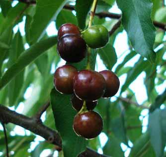 Este árbol frutal, crece libremente de manera silvestre, es frondoso, con ramas que cuelgan los racimos de la fruta y requiere pocos cuidados. Puede alcanzar los 12 metros de altura y la cosecha de la fruta se realiza una vez al año. La fruta, pequeña, muy dulce, de sabor agradable, redonda y de colores negro y rojo, fuente de vitaminas, minerales y calcio, es utilizada para la preparación de jugos, mermeladas, postres, conservas y se puede consumir fresca.