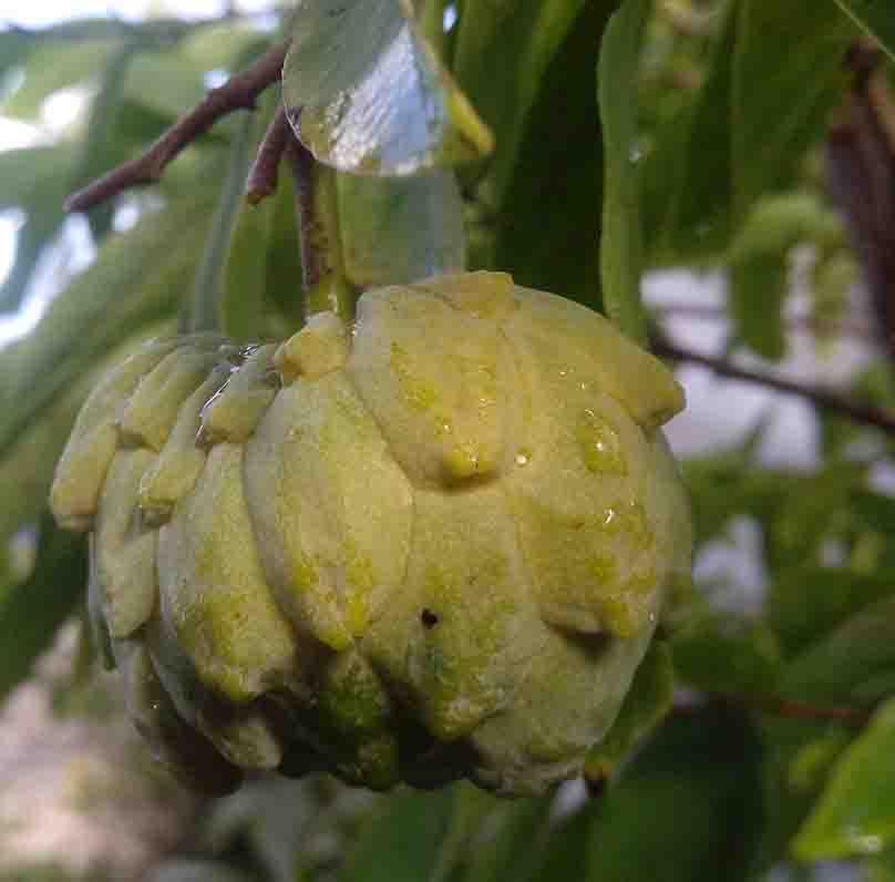 A su fruto se le atribuyen diversas propiedades medicinales, entre ellas, matar células cancerígenas. El fruto es redondeado amarillo de entre 2 a 4 centímetros de diámetro, dulce y comestible y está compuesto por gran cantidad de frutos individuales redondeados. Este árbol es habitual de los márgenes de bosques, matorrales y bosques degradados.