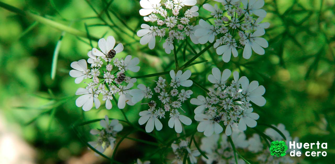 El cilantro atrae numerosos insectos beneficiosos, como avispas depredadoras y taquinidos, un tipo de mosca que parasita insectos plagas del huerto.Repele: