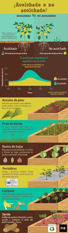 También enumeraba los materiales más utilizados para hacer un acolchado: hojas secas, cortezas, restos de césped cortado, paja, serrín, cartones, etc.