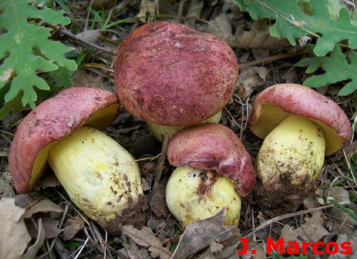OBSERVACIONES: lnconfundible por su cutícula rosa carmín, pie y poros amarillos que no azulean al tacto y carne de color claro inmutable.