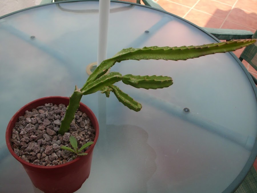 Este es el único injerto que tengo ya que no me gustan mucho, no obstante este gymnocalycium morado ha florecido y me ha convencido un poco más jaja...