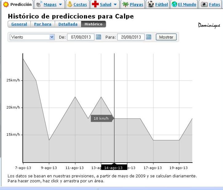 NE. de 5 a 9 de la mañana. Vientos suaves de 18K/h.