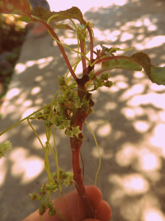 La Cúscuta desarrolla racimos de flores que pueden ser blancas, rosadas o amarillentas. Emite 16.000 semillas por planta madura.