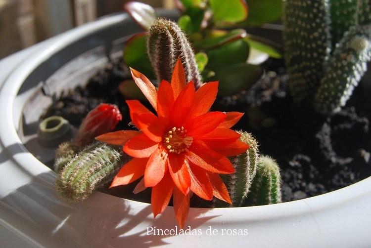 Son pequeños cactus juntos, con flores de color naranja que solo duran un día.