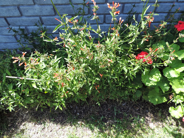 Posee inflorescencia terminales y bracteadas, las flores son zigomorfas y bisexuales; la corola es bilabiada roja, en ocasiones puede ser amarilla, de unos 2 cm de largo. El fruto es una cápsula ovoide comprimida lateralmente.