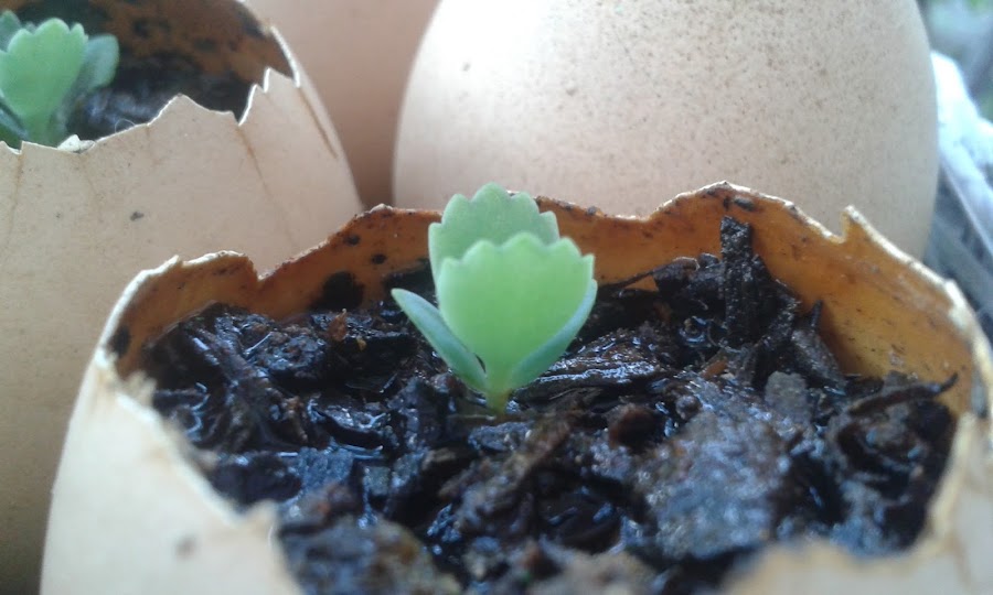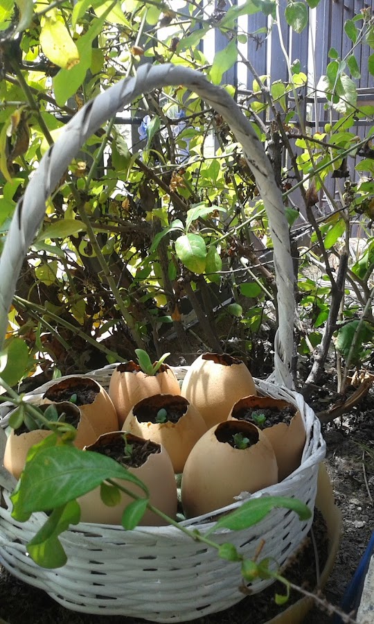 Les dejare algunas imágenes de mis macetas con cáscaras de huevo.