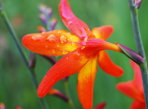 A medida que hemos avanzado en el tiempo y llegado al ecuador del verano, han hecho su aparición en el jardín los colores más ardientes del círculo cromático: bermellones y naranjas son los protagonistas del mes de agosto aunque neutralizados por los diferentes tonos de verde y el amarillo pajizo de la pobrecita hierba que en este mes pasa por su peor momento.