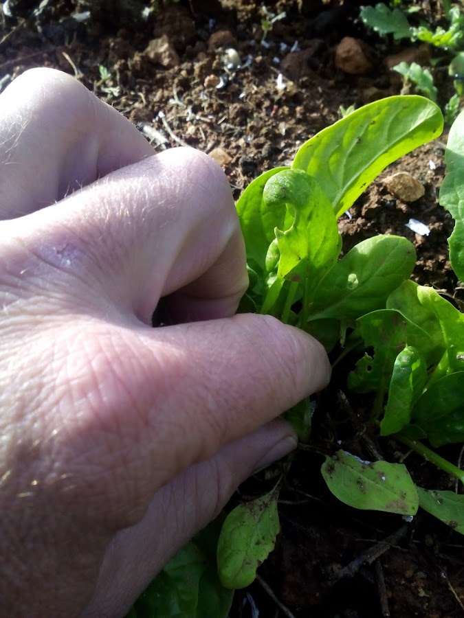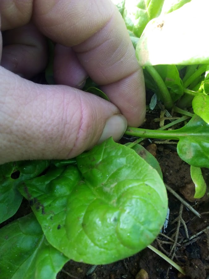 Para arrancar hojas de espinacas nos ayudamos de dedos y uñas.