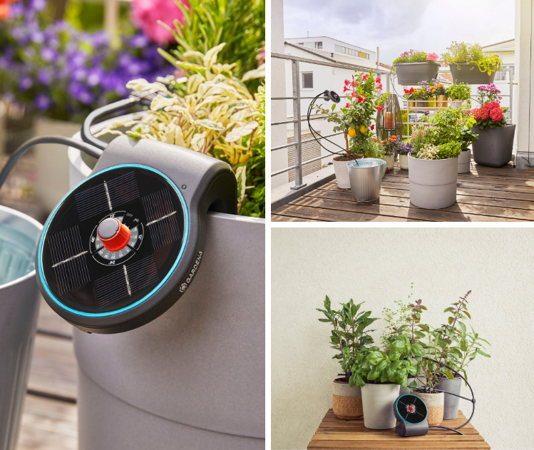 Sencillamente, se trata de llenar un cubo con agua, introducir la bomba en el mismo, poner en marcha el programador eligiendo uno de los 14 programas de riego predefinidos y dejar que el agua fluya por los goteros hasta las macetas (¡puede regar hasta 20 plantas!).