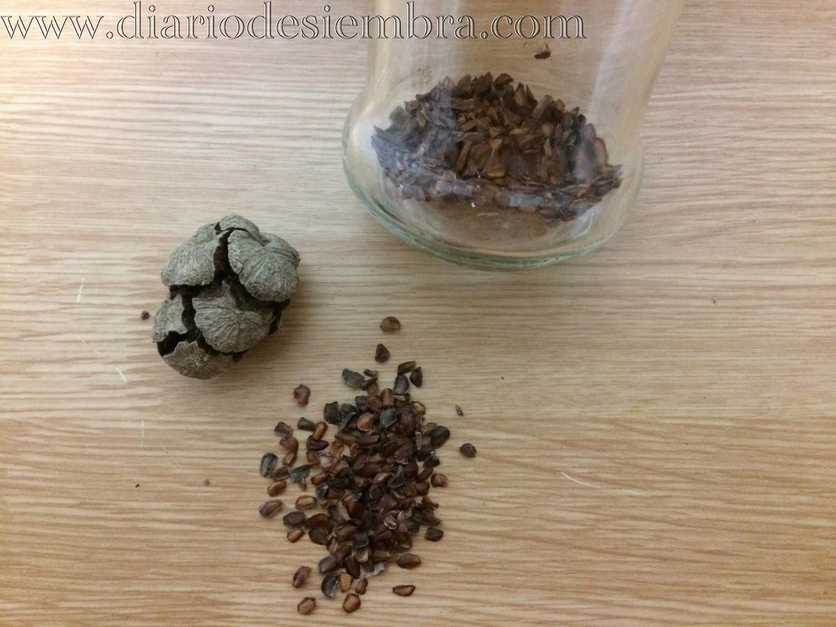 Las semillas se obtienen de sus frutos, que son unas piñas redondeadas de pequeño tamaño, en cuyo interior encontraremos sus semillas, de color marrón rojizo, forma casi plana y formando capas.