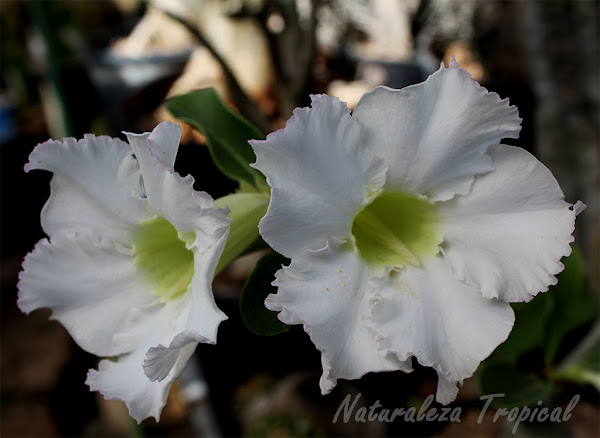Variedad blanca de la flor de la Rosa del Desierto, Adenium obesum