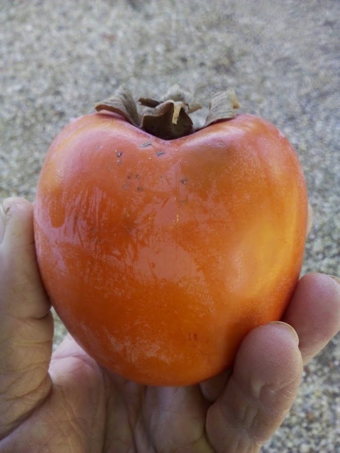 El kaki, también conocido como "palo santo" es una fruta con aspecto parecido a la naranja por su color y forma, aunque la textura y el sabor son completamente diferentes.