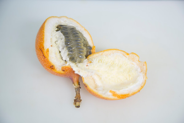 La granadilla o comúnmente llamada la fruta de la pasión es un fruto tropical originario de los Andes. Su fruto es muy parecido a lo que en España conocemos como el níspero, pero el parecido sólo es externo. La granadilla cuando lo abres está formada por un montón de semillas muy sabrosas. Con estas semillas se hacen zumos tropicales, batidos, salsas etc.