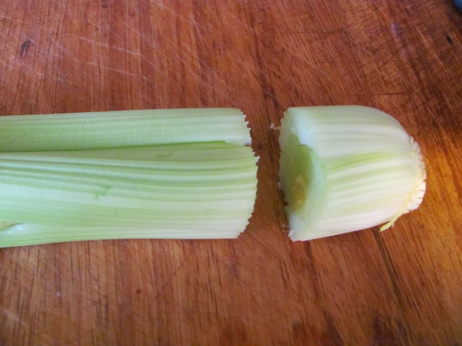1.- Para aprender como hacer rebrotar el apio, empezaremos por elegir un buen candidato de la especie, cuando vayamos al super a surtir la despensa. A la derecha les muestro el apio que elegí para hacer el experimento, tiene un hermoso color verde brillante.