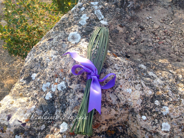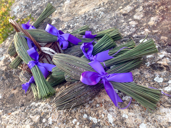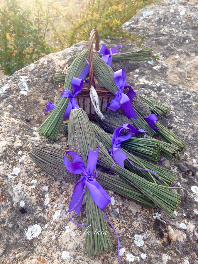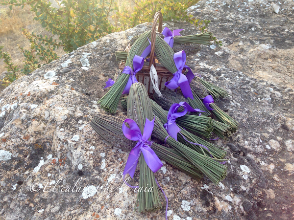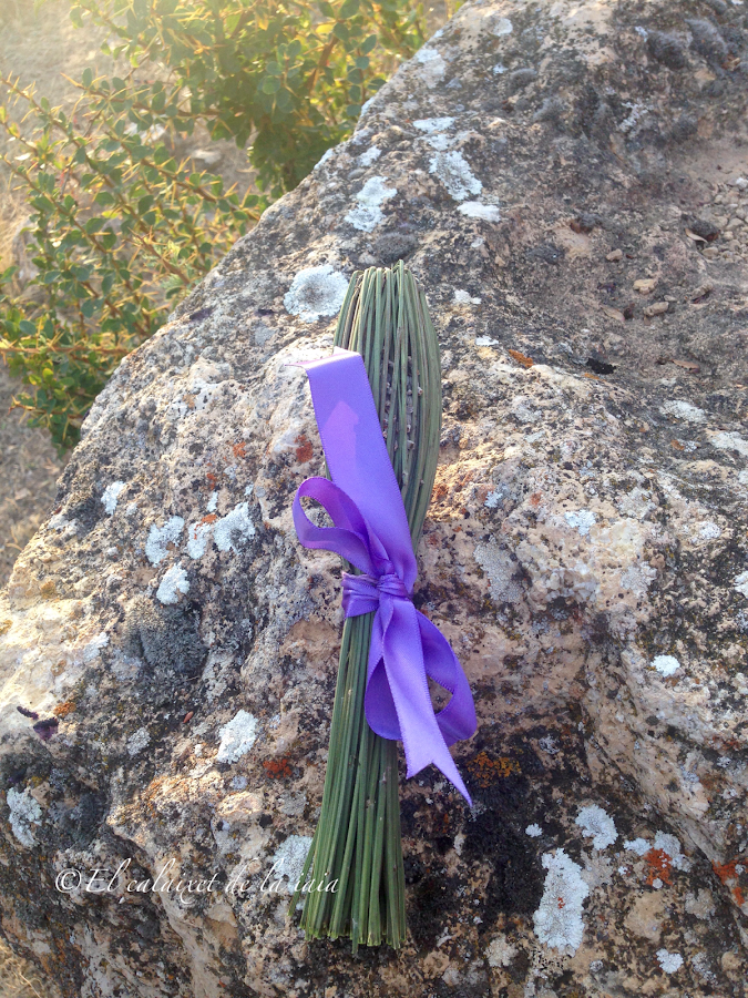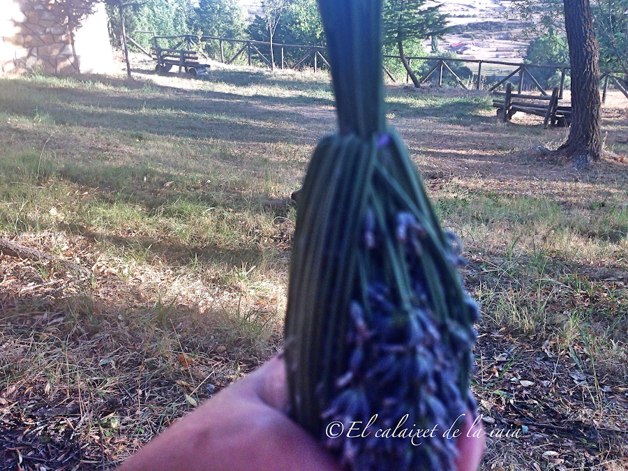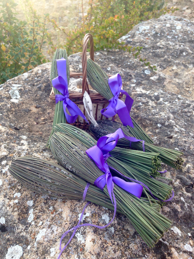 Al llegar final de septiembre, y acercarse la fecha de nuestro aniversario de boda....mi marido cortaba el espliego porque es cuando el grano está mas grueso y mejor huele, para hacer las maracas, piñas o mazorcas de lavanda que preparaba cada final de verano, para poner, (como antaño había costumbre) en los cajones entre la ropa blanca o colgar como ambientador y antipolilla natural.