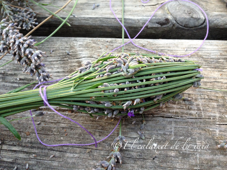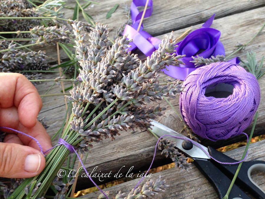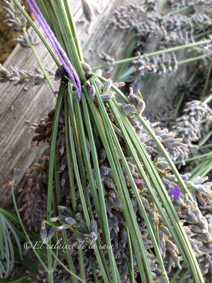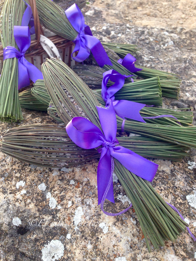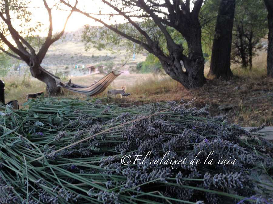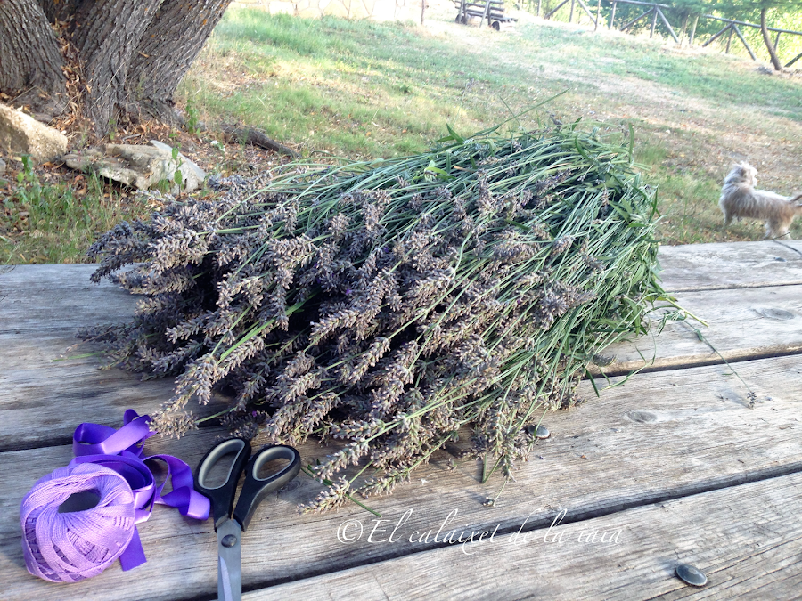 Al llegar final de septiembre, y acercarse la fecha de nuestro aniversario de boda....mi marido cortaba el espliego porque es cuando el grano está mas grueso y mejor huele, para hacer las maracas, piñas o mazorcas de lavanda que preparaba cada final de verano, para poner, (como antaño había costumbre) en los cajones entre la ropa blanca o colgar como ambientador y antipolilla natural.