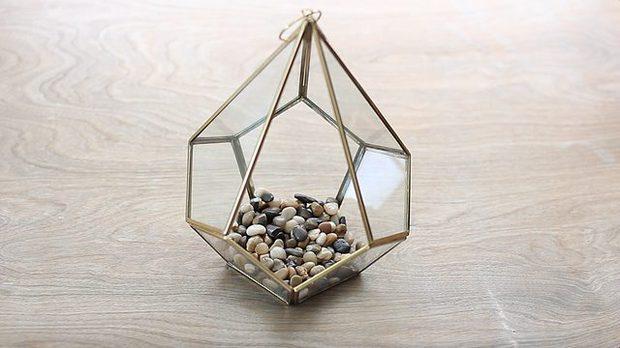 Un contenedor de vidrio con un agujero amplio (ten en cuenta que el recipiente tenga la boca bien amplia para no generar demasiada humedad en las plantas, las suculentas pueden vivir en ambientes más secos)