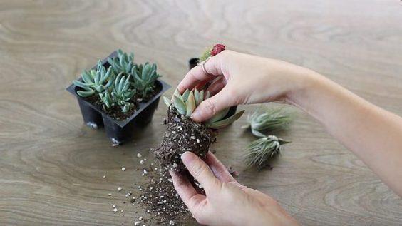 Retirar las suculentas de las macetas y aflojar las raíces con cuidado.