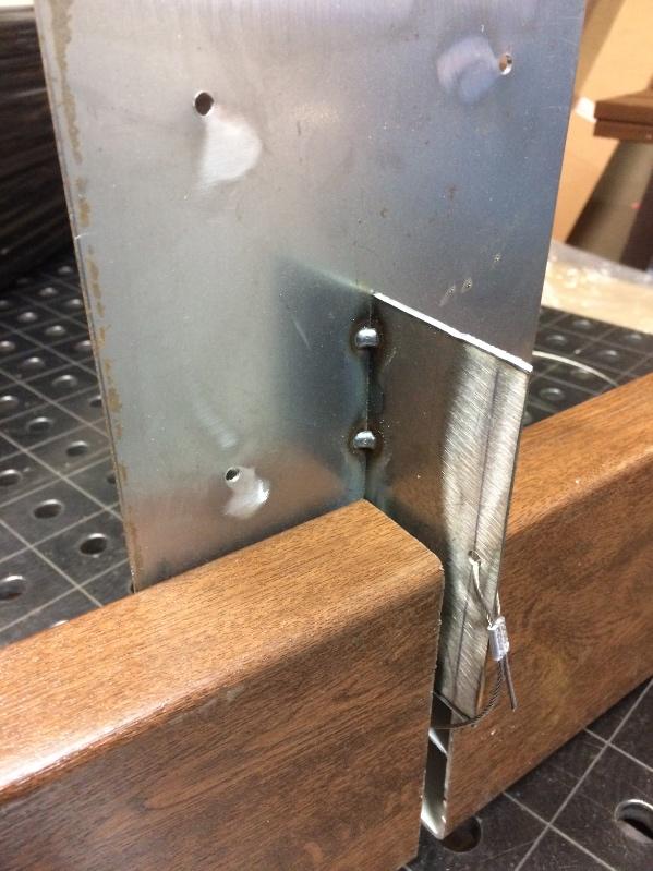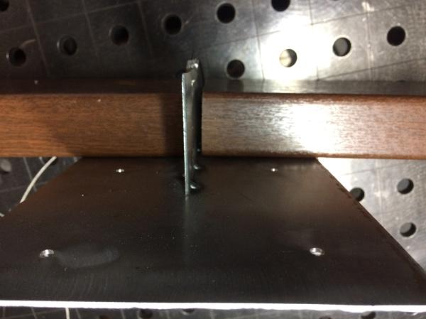 Atento: los perfiles de PVC no quedan haciendo tope con la pieza central de la T. Si los colocas tocando la pieza central, los puntos de soldadura impedirán que el PVC quede bien encajado en la placa, y la unión quedará torcida cuando la atornilles. Colócalo como muestra la siguiente imagen.Alinea bien los perfiles