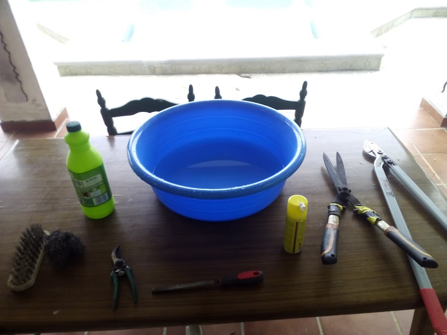 Para conservar las herramientas en buena forma no está de más limpiarlas y desinfectarlas antes de guardarlas.