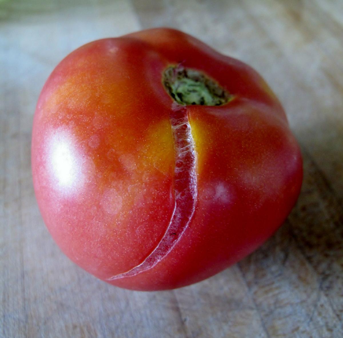tomates agrietados por el calor • Tambien ocurre que los tomates maduros se agrietan después de una lluvia fuerte.