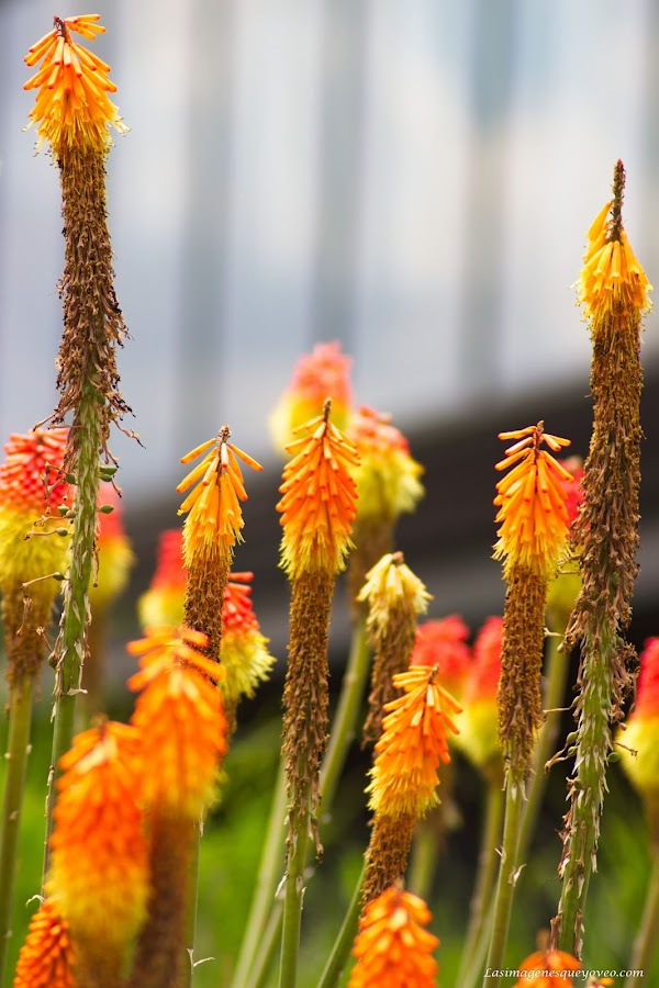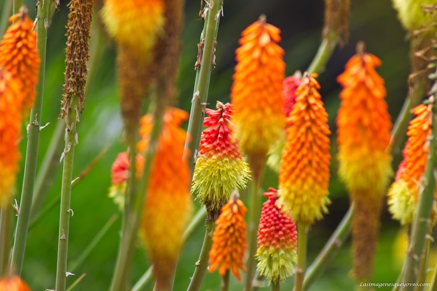 Estas flores como mazorcas o campanillas se hierguen en grupo buscando el sol derrochando unos vivos colores naranjas, amarillos y bermellón.