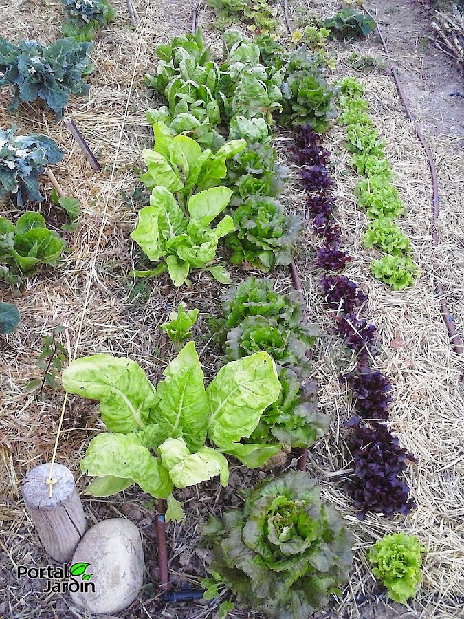 Acelgas y lechugas sobre un mulching de paja.