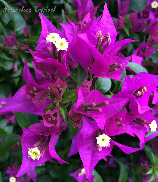 Consejos esenciales para cultivar las famosas plantas conocidas como Buganvillas o Flores de Papel, género Bougainvillea. Fotografías de algunas variedades.