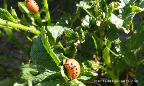 Todos los años tenemos escarabajos en las plantas de patatas que sembramos en la huerta. Si no tomásemos medidas no llegaríamos a cosechar patatas. Podríamos tratar la simiente o las plantas con multitud de productos fitosanitarios autorizados pero los sustituimos por un conjunto de medidas de control con las que conseguimos que no lleguen a constituir plagas. Esto hacemos cada temporada:. Rotación de cultivos. Lo ideal sería no sembrar patatas en la huerta todos los años pero lo que hacemos es no sembrar en la misma zona patatas dos años seguidos.