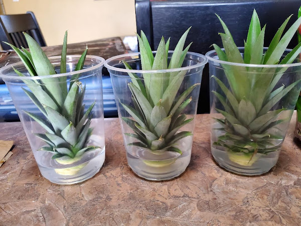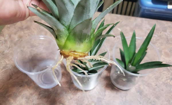 Hola a Todos! Hoy les tengo unas fotos con relación a como sembrar coronas de piñas. Lo primero es hacer que le salgan raíces a la corona. Esto es bien fácil de hacer. Se coge la corona y se pone en un envase plástico con agua y se pone a coger sol afuera o por una ventana dentro de la casa o bajo una luz de la cocina o una lampara por la noche. El agua se cambia cada dos dias como máximo para pre ...