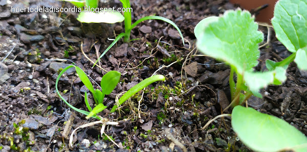 Lo que no acaba de despegar tampoco es la espinaca. Las hojas han salido, pero va lenta y desigual. Además las pocas hojas que han salido lo han hecho con un tamaño diminuto. En principio no debería ser un problema el abono, ya que siempre utilizo una buena cantidad de hummus de lombriz, aunque con el tiempo pensaré si le añado algo más.