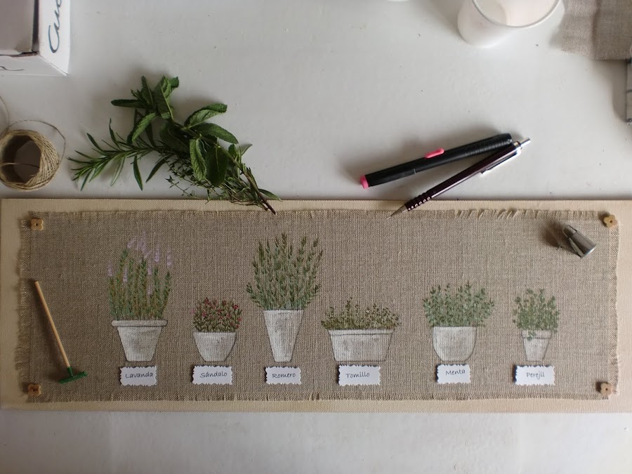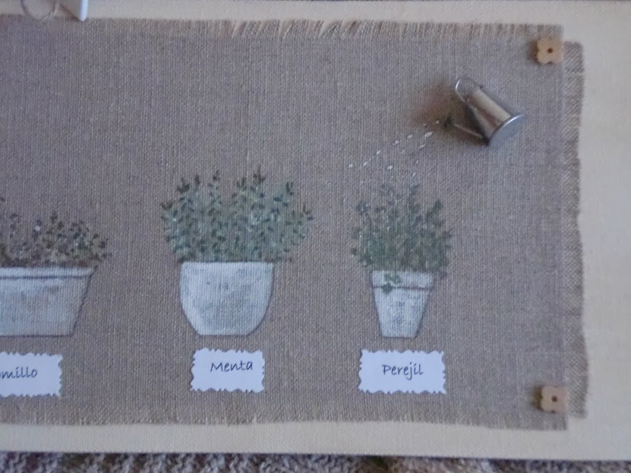 Me llegaron hace poco unas miniaturas que había pedido para Jardín, y he querido colocarlas en este cuadro, se ven monisimas y totalmente integradas.